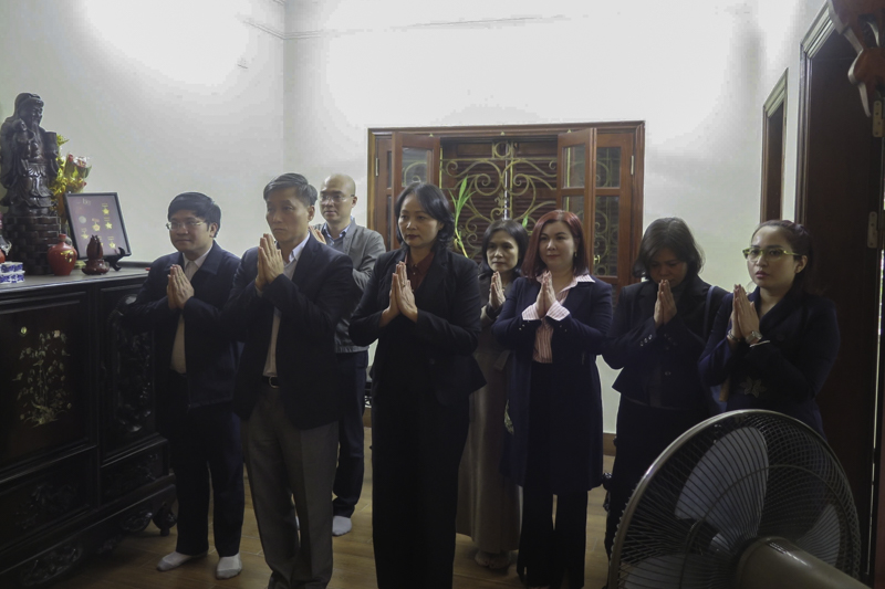 Thứ trưởng Bộ Tư pháp Đặng Hoàng Oanh cùng đại diện các đơn vị thuộc Bộ thắp hương tưởng nhớ cố Bộ trưởng Phan Hiền.
