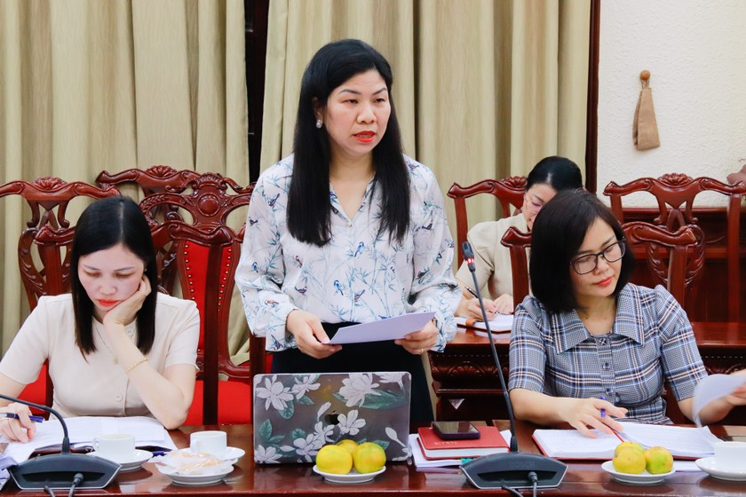 Bà Tô Thị Thu Hà, Phó Cục trưởng Cục PBGDPL&TGPL báo cáo kết quả công tác và định hướng triển khai nhiệm vụ của Cục.