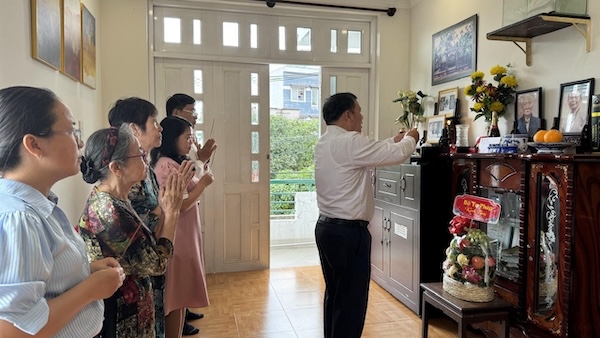 Thứ trưởng Đặng Hoàng Oanh cùng đoàn thăm, tặng quà lưu niệm cho gia đình cố Thứ trưởng Trần Đông.