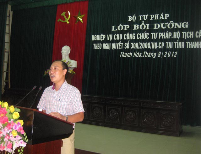 Thực hiện Nghị quyết 30a/2008/NQ-CP ngày 27/12/2008 của Chính phủ về chính sách hỗ trợ giảm nghèo nhanh và bền vững đối với 61 huyện nghèo; Quyết định số 52/2010/QĐ-TTg ngày 18/8/2010 của Thủ tướng Chính phủ về chính sách hỗ trợ pháp lý nhằm nâng cao nhận thức, hiểu biết pháp luật cho người nghèo, đồng bào dân tộc thiểu số tại các huyện nghèo giai đoạn 2011 - 2020. Sáng ngày 11/9/2012, Bộ Tư pháp đã phối hợp với Sở Tư pháp mở lớp bồi dưỡng nghiệp vụ cho 121 công chức Tư pháp - Hộ tịch cấp xã thuộc các huyện nghèo tỉnh Thanh Hóa.