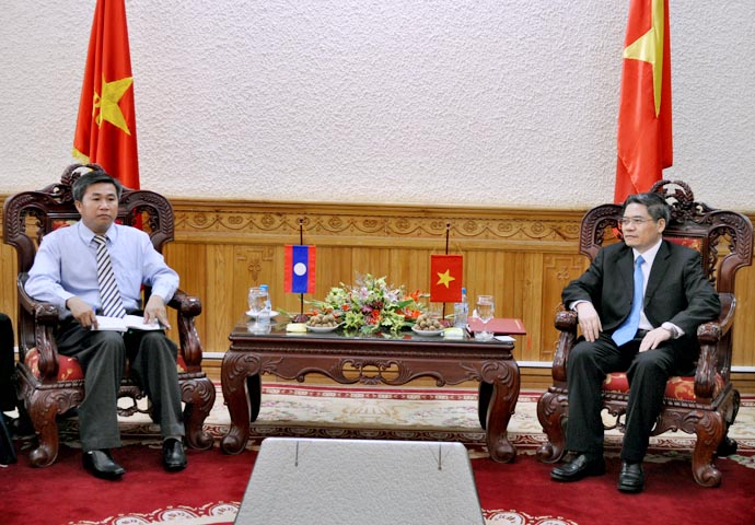 Sáng nay (10/7), trong khuôn khổ chuyến thăm và làm việc tại Việt Nam, Đoàn cán bộ Bộ Tư pháp Lào do đồng chí Vikon Bunvilay, Phó Vụ trưởng Vụ Quản lý hệ thống tư pháp làm Trưởng đoàn đã đến chào xã giao Thứ trưởng Bộ Tư pháp Đinh Trung Tụng.