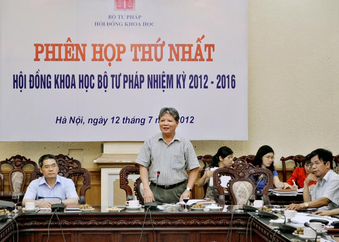 Chiều 12/7, Bộ Tư pháp đã tổ chức phiên họp thứ nhất Hội đồng khoa học để làm lễ chia tay thành viên Hội đồng khoa học nhiệm kỳ 2004 – 2011, kiện toàn nhân sự Hội đồng khoa học nhiệm kỳ 2012 – 2016 và bàn phương hướng, kế hoạch hoạt động của Hội đồng khoa học Bộ trong thời gian tới. Bộ trưởng Hà Hùng Cường – Chủ tịch Hội đồng khoa học chủ trì phiên họp.