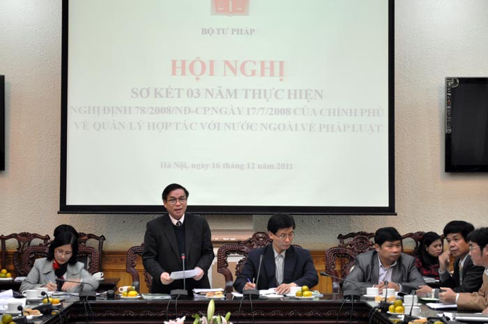 Thực hiện Kế hoạch hoạt động năm 2011, sáng 16/12, Bộ Tư pháp đã tổ chức Hội nghị sơ kết 3 năm thực hiện Nghị định 78/2008/NĐ-CP ngày 17/7/2008 của Chính phủ về quản lý hợp tác với nước ngoài về pháp luật (Nghị định 78).