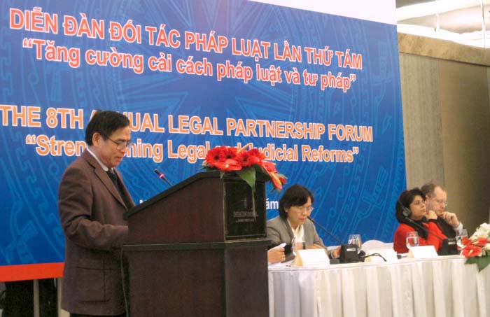 Thực hiện kế hoạch hoạt động năm 2011, trong khuôn khổ Dự án “Tăng cường tiếp cận công lý và bảo vệ quyền tại Việt Nam” do Chương trình phát triển Liên hợp quốc (UNDP) tài trợ, sáng 14/12, Bộ Tư pháp đã tổ chức Diễn đàn đối tác pháp luật lần thứ 8. Đây là một thiết chế chính thức về điều phối các hoạt động hợp tác trong lĩnh vực pháp luật được tổ chức thường niên.