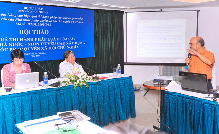 Ngày 12/11, tại TP. HCM, Hội thảo “Hiệu quả thi hành pháp luật của các cơ quan nhà nước - nhìn từ yêu cầu xây dựng Nhà nước pháp quyền xã hội chủ nghĩa” đã diễn ra dưới sự chủ trì của Bộ trưởng Bộ Tư pháp Hà Hùng Cường cùng với sự tham dự của đông đảo các nhà khoa học, nhà nghiên cứu trên cả nước.