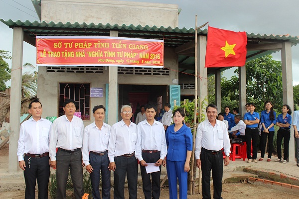 Để thiết thực lập thành tích chào mừng cuộc bầu cử đại biểu Quốc hội khóa XIV và đại biểu Hội đồng nhân dân các cấp nhiệm kỳ 2016 - 2021, Kỷ niệm 71 năm Ngày truyền thống ngành Tư pháp Việt Nam (28/8/1945 - 28/8/2016), chiều ngày 15/8/2015, Sở Tư pháp tỉnh Tiền Giang đã phối hợp với cấp ủy, chính quyền xã Phú Đông, huyện Tân Phú Đông tổ chức Lễ trao tặng nhà “Nghĩa tình tư pháp” năm 2016 cho gia đình đồng chí Trần Văn Minh Quy, công chức Tư pháp - Hộ tịch xã Phú Đông, huyện Tân Phú Đông thuộc diện khó khăn về nhà ở.