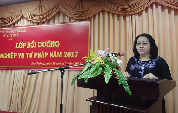 Ngày 20/7, Sở Tư pháp Sóc Trăng tổ chức lớp bồi dưỡng nghiệp vụ Tư pháp cho công chức Phòng Tư pháp cấp huyện và công chức Tư pháp - Hộ tịch cấp xã trên địa bàn tỉnh. Tham dự lớp bồi dưỡng có các đồng chí: Nguyễn Thanh Bình, Cục trưởng Cục Công tác phía Nam - Bộ Tư pháp; Nguyễn Thị Thu Vân, Tỉnh ủy viên - Giám đốc Sở Tư pháp.