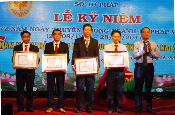 Vừa qua, Sở Tư pháp tỉnh Đồng Nai đã long trọng tổ chức Lễ kỷ niệm 72 năm ngày Truyền thống ngành Tư pháp Việt Nam (28/8/1945 – 28/8/2017) và 35 năm ngày Thành lập ngành Tư pháp tỉnh Đồng Nai (1982-2017).Tham dự Lễ kỷ niệm có đồng chí Lê Tiến Châu – Thứ trưởng Bộ Tư pháp, đồng chí Lê Thị Thu Ba – Nguyên Ủy viên Trung ương Đảng, nguyên Chủ nhiệm Ủy ban Tư pháp của Quốc hội, nguyên Thứ trưởng Bộ Tư pháp, đồng chí Trần Văn Tư - Phó Bí thư Thường trực Tỉnh ủy, đồng chí Đinh Quốc Thái – Phó Bí thư Tỉnh ủy, Chủ tịch UBND tỉnh, các đồng chí lãnh đạo các sở, ban ngành, đoàn thể cấp tỉnh, UBND và Phòng Tư pháp cấp huyện, các tổ chức hành nghề công chứng, thừa phát lại và gần 100 công chức, viên chức ngành Tư pháp tỉnh Đồng Nai qua các thời kỳ.