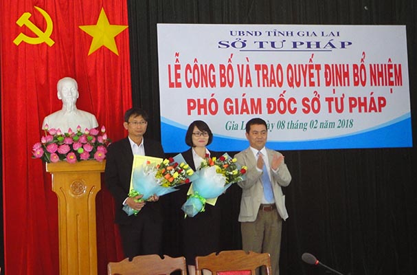 Tại buổi lễ, đồng chí Huỳnh Văn Tâm - Giám đốc Sở Nội vụ đã công bố 02 Quyết định của Ủy ban nhân dân tỉnh: Số 107/QĐ-UBND ngày 02/02/2018 về việc bổ nhiệm ông Dương Văn Thành - Trưởng Phòng Công chứng số 1 của Sở Tư pháp, giữ chức vụ Phó Giám đốc Sở Tư pháp; và số 110/QĐ-UBND về việc bổ nhiệm bà Nguyễn Như Ý - Trưởng phòng Xây dựng và Kiểm tra văn bản quy phạm pháp luật của Sở Tư pháp, giữ chức vụ Phó Giám đốc Sở Tư pháp kể từ ngày 02/02/2018.