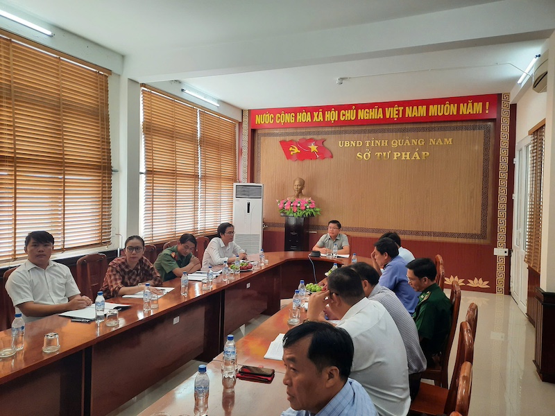 Điểm cầu trực tuyến của Sở Tư pháp tỉnh Quảng Nam, tham dự và chủ trì có đồng chí Bùi Xuân Hiếu, Phó Giám đốc Sở Tư pháp tỉnh; đồng chí Lương Đình Nam, Quyền Giám đốc Trung tâm TGPL Nhà nước tỉnh; đại diện pháp chế các Sở, ngành, tổ chức trên địa bàn tỉnh gồm: Công an, Bộ chỉ huy Bộ đội Biên phòng, Tòa án nhân dân, Viện kiểm sát nhân dân, Tài chính, Dân tộc và Tôn giáo; các Trợ giúp viên pháp lý (TGVPL) của Trung tâm cũng về tham dự đông đủ.