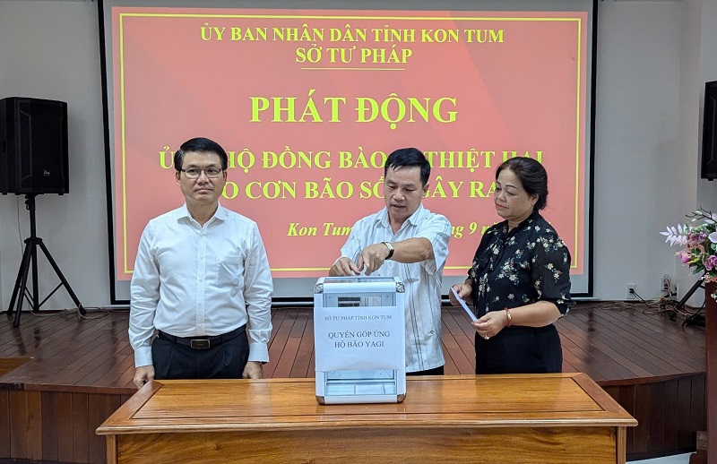 Hưởng ứng lời kêu gọi của Ủy ban Trung ương Mặt trận Tổ quốc Việt Nam, Thư kêu gọi của Tỉnh ủy, Hội đồng nhân dân, Ủy ban nhân dân tỉnh, Ủy ban Mặt trận Tổ quốc Việt Nam tỉnh, chiều ngày 13/9/2024, Sở Tư pháp tỉnh Kon Tum tổ chức phát động trong đội ngũ công chức, viên chức, người lao động thuộc Sở ủng hộ đồng bào các tỉnh, thành phố phía Bắc bị thiệt hại do cơn bão số 3 gây ra.