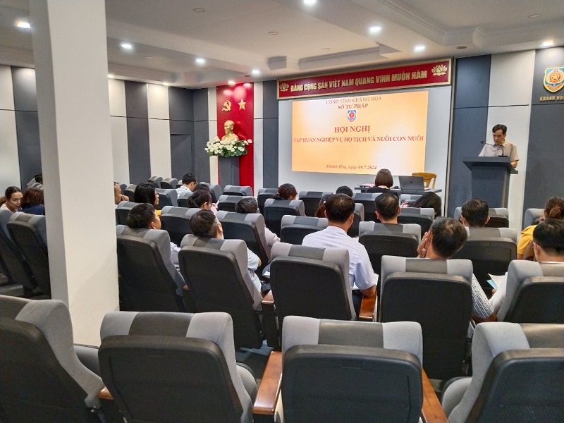 Ngày 09/7, tại TP.Nha Trang, Sở Tư pháp Khánh Hòa tổ chức tập huấn nghiệp vụ lĩnh vực hộ tịch và nuôi con nuôi năm 2024 cho 44 đại biểu là lãnh đạo và công chức được giao phụ trách công tác hộ tịch và nuôi con nuôi của Phòng Tư pháp; lãnh đạo UBND và công chức tư pháp – hộ tịch các xã, thị trấn trên địa bàn huyện Diên Khánh.