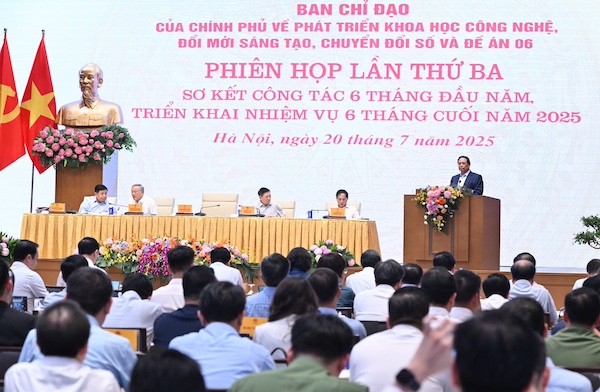 Ngày 20/7, Thủ tướng Chính phủ Phạm Minh Chính, Trưởng Ban Chỉ đạo của Chính phủ về phát triển khoa học, công nghệ, đổi mới sáng tạo, chuyển đổi số và Đề án 06 (Ban Chỉ đạo), chủ trì Phiên họp thứ Ba của Ban Chỉ đạo để sơ kết công tác 6 tháng đầu năm, triển khai nhiệm vụ 6 tháng cuối năm 2025.